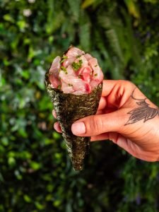 Atum, Abacate, Kimuchi e Ovas Tobiko Tuna, Avocado, Kimuchi, and Tobico Roe...