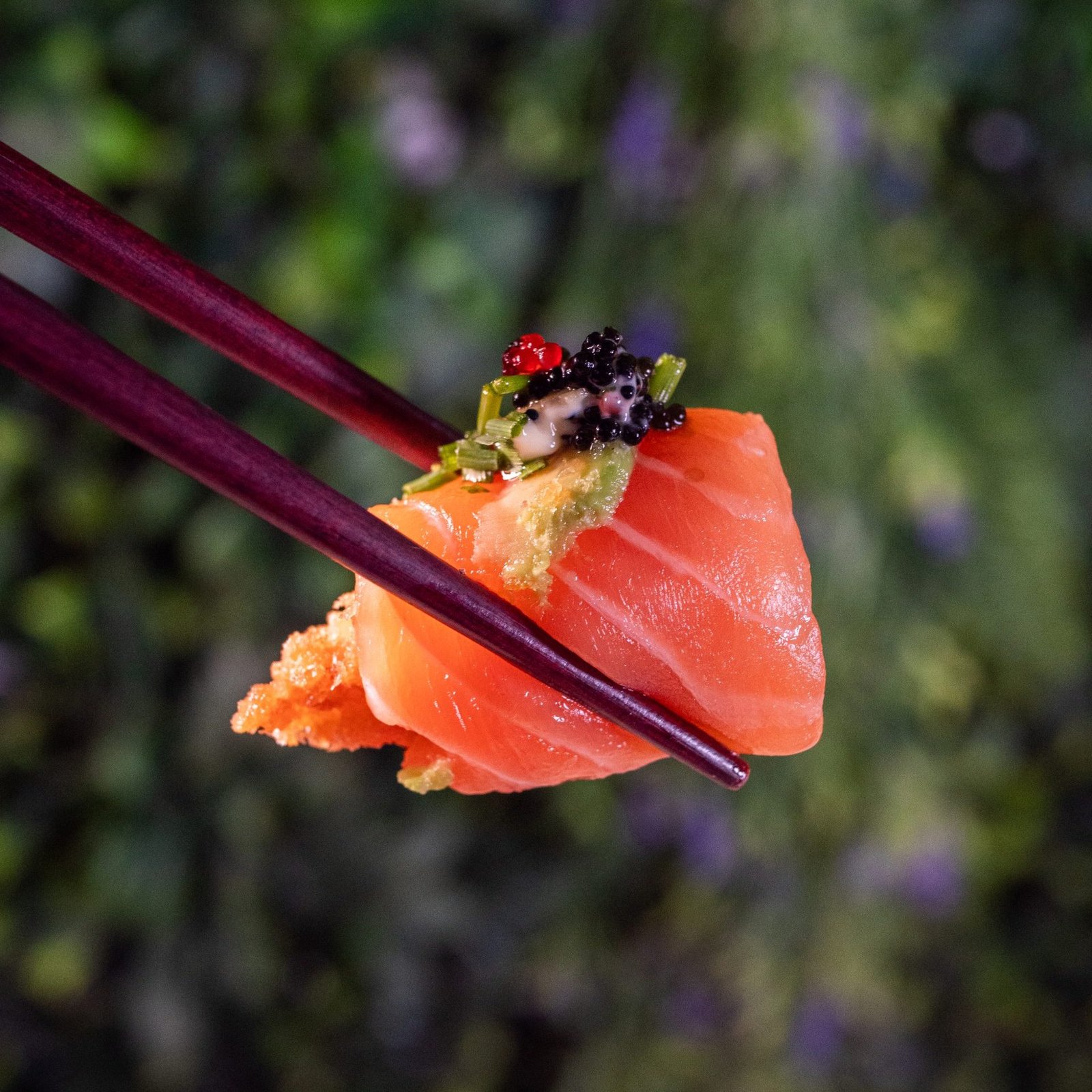 Camarão Panado enrolado em Salmão com Abacate, Ovas Tobiko e Sweetchilli Breaded Shrimp Wrapped in Salmon with Avocado, Tobiko Roe and Sweetchilli