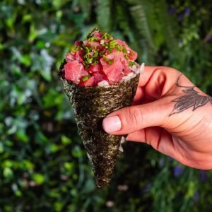 Atum, Abacate, Kimuchi e Ovas Tobiko Tuna, Avocado, Kimuchi, and Tobico Roe...