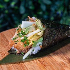 Salmão, Spicy, Abacate, Rúcula, Sésamo, e Cebolinho Salmon, Spicy, Avocado, Argula, Sesame ...